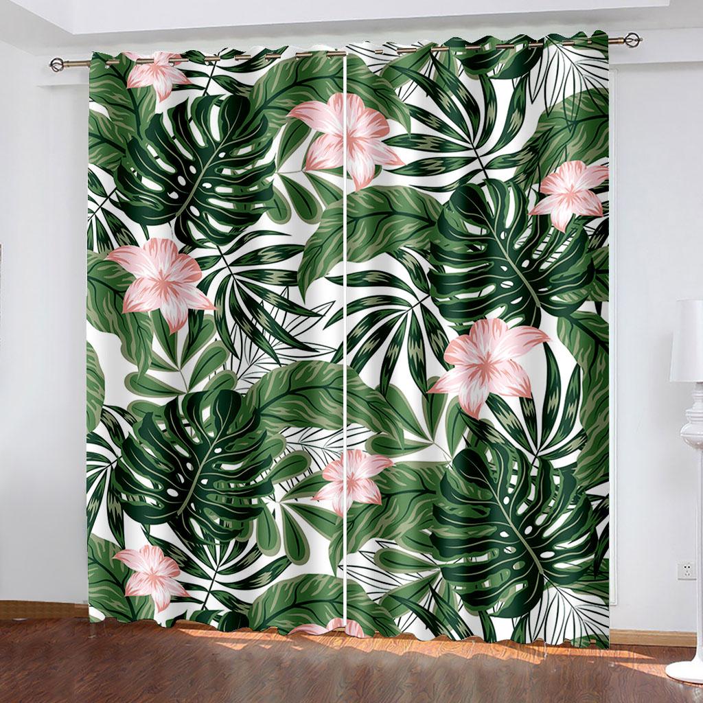 Тропическое растение INS Цифровая печать узора для штор Гостиная Спальня Украшение домашней обстановки 90г полиэфирное волокно две панели W50xH130(CM)x2pcs&Grommet Top темно-синий