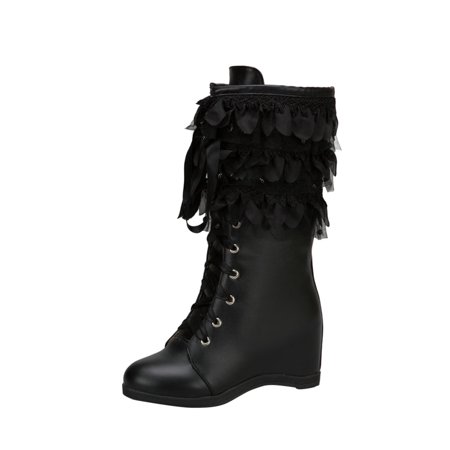 Mackneog Women Mid Calf Boots Autumn And Winter able Lace Lace Comfortable Wedge Round Toe Lace Up Gift on Clearance