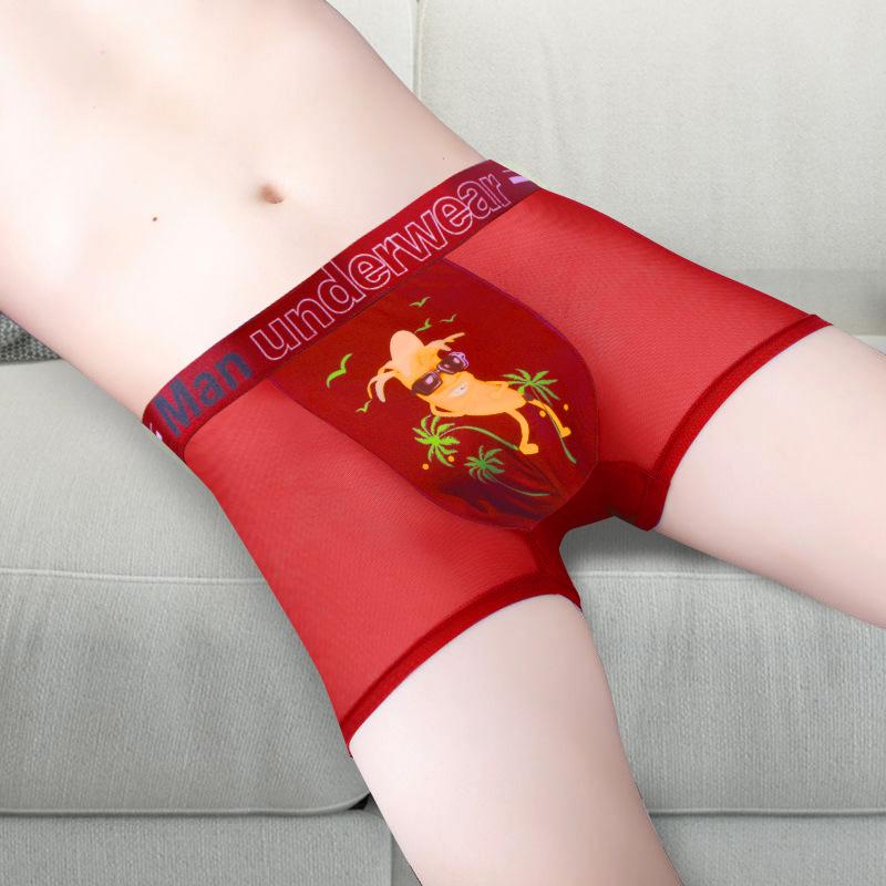 Трусы мужские Новая тонкая секция Трусы мужские Ледяной шелк Сетчатая пряжа Быстросохнущие Сексуальные Прозрачные Большого размера Дышащие Боксеры 4XL красный