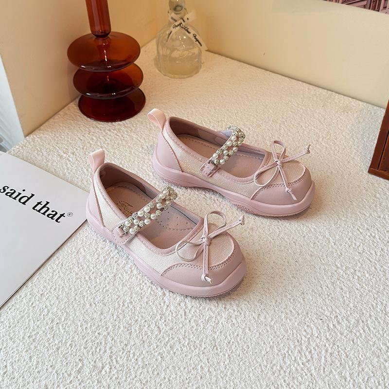 Туфли для девочек, туфли принцессы, атласные, весенне-осенние, новая мягкая подошва, неглубокий вырез, бант, детские хрустальные туфли, туфли для балета 25 розовый