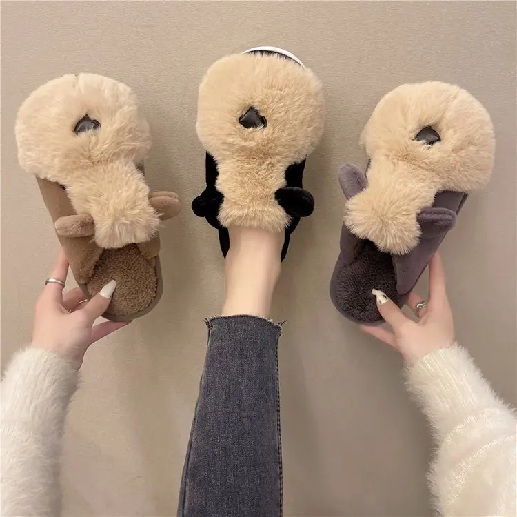 Туфли для девочек, шлепанцы, Повседневная зимняя обувь из флока, слайдеры, женские сланцы с низким закрытием, Женская Роскошная фотообувь, ...