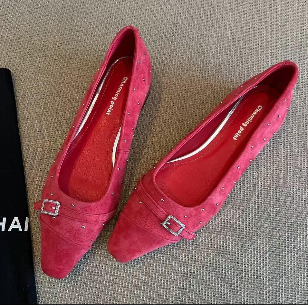 Туфли из овечьей кожи, однотонные, с пряжкой, маленькие, ивовые, ретро, с толстым каблуком, маленькие, заостренные, легкие, из ивовой кожи, 2025, лето, одна педаль 35 красный