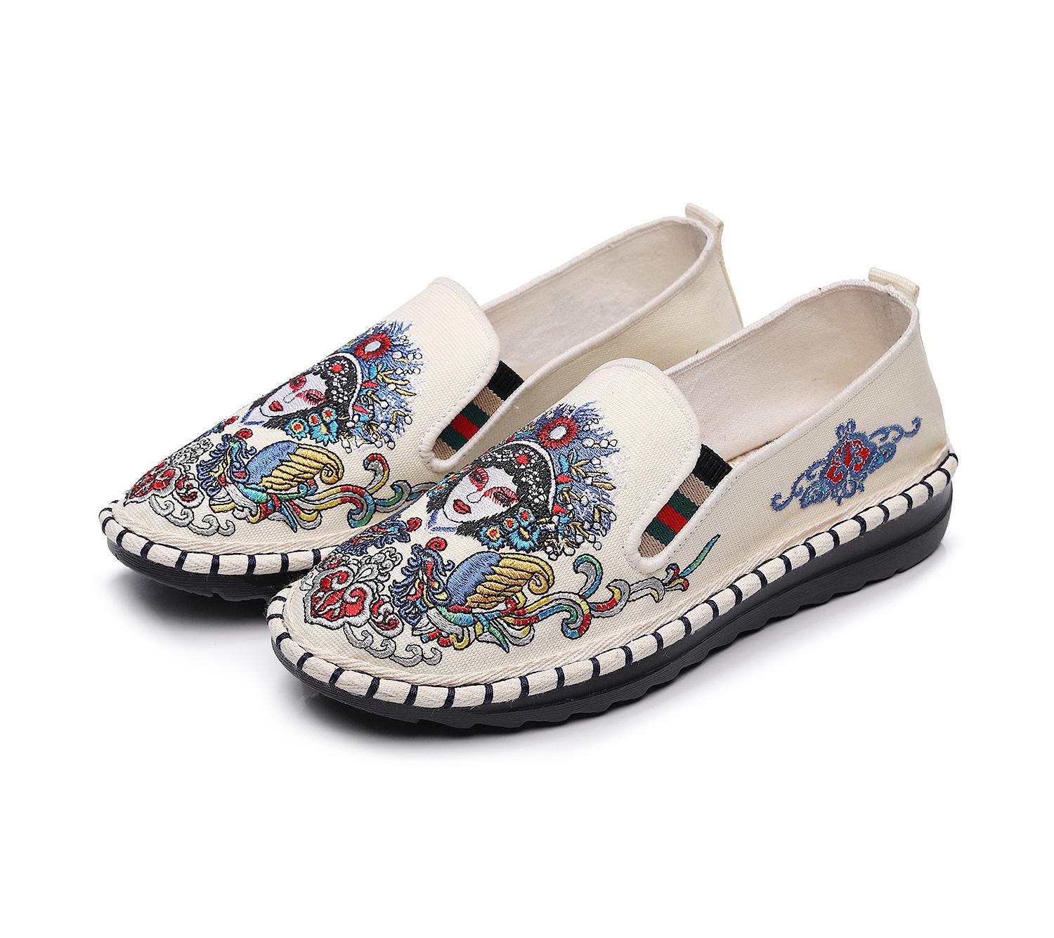 Туфли из ткани в этническом стиле с вышивкой на плоской подошве, маска для лица в античном стиле с одной педалью, фиксирующая нить, вышитая женская обувь 40