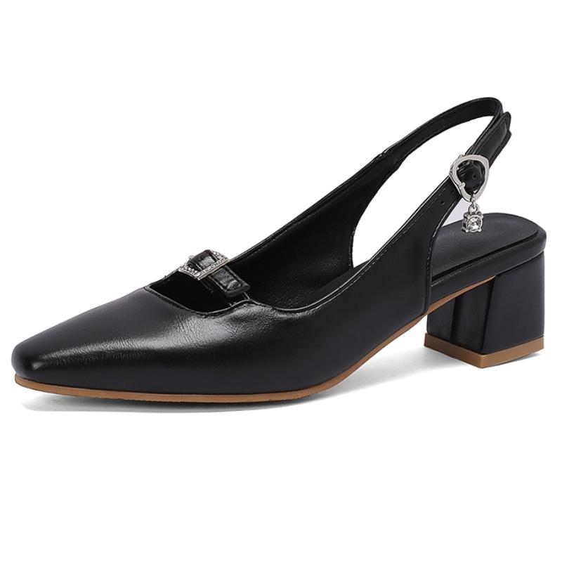 Туфли-лодочки на среднем каблуке с ремешком на пятке Женские 2024 Элегантные с закрытым носком Черные Синие Красные Телесные на каблуке Офисные Свадебные туфли Женские Сандалии 48 чёрный