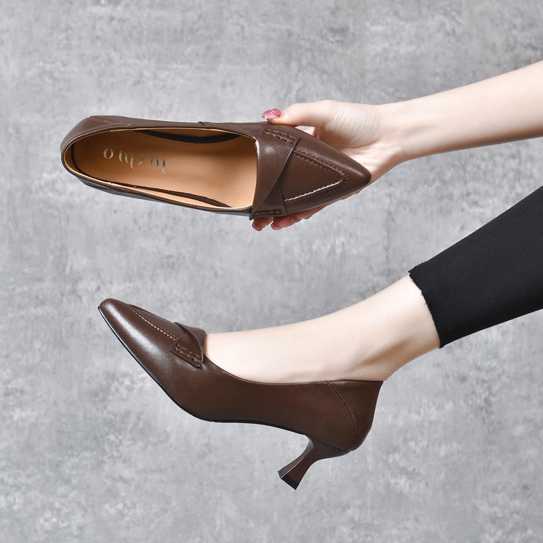 Туфли на высоком каблуке женские 2024 весна простые темпераментные одинарные туфли модная обувь овчина с мелким носком рабочая обувь профессиональная модельная обувь 40 коричневый