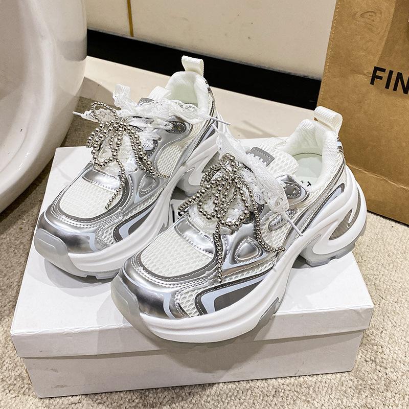 Туфли на ленточной платформе в стиле папиных кроссовок, женские, лето 2025, новые, ретро, для маленького человека, увеличивающие рост, жареные уличные, повседневные, спортивные 40