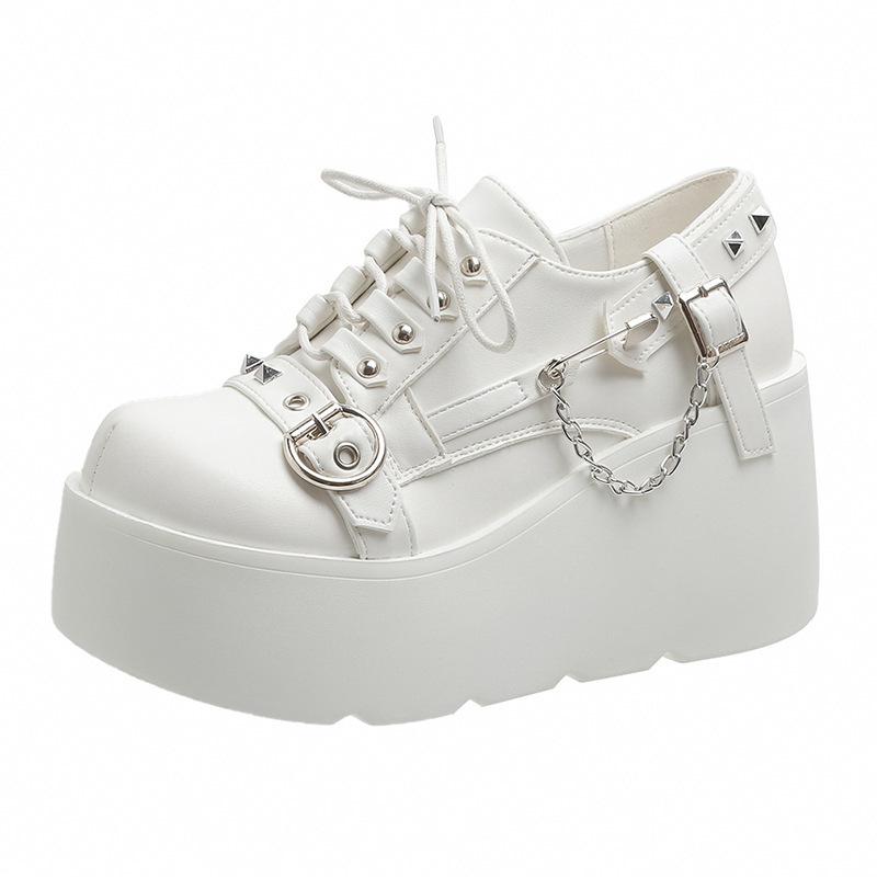 Туфли на металлической платформе в стиле японского ретро, темного готического панка, с застежкой-молнией, маленькие кожаные туфли на молнии для девушек, милые, крутые, с большой головой. 42 белый