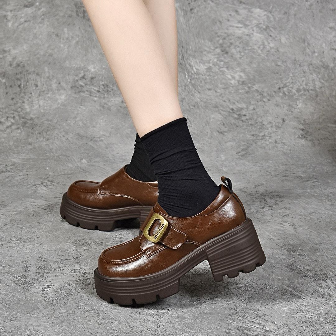 Туфли на платформе женские осенне-зимние с квадратной пряжкой водонепроницаемые на столе-маффине и на одной педали одинарные туфли обувь на четыре сезона 40 коричневый