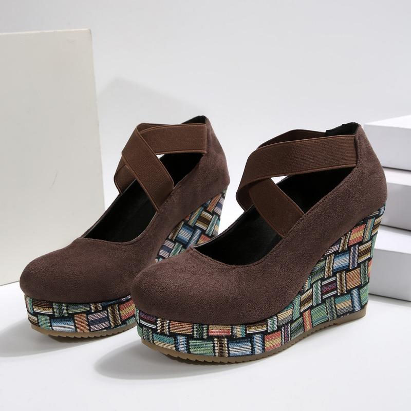 Туфли на танкетке Весна Новые Круглый носок С мелким вырезом Замшевые Водонепроницаемая Платформа Противоскользящие Износостойкие Высокие каблуки 41