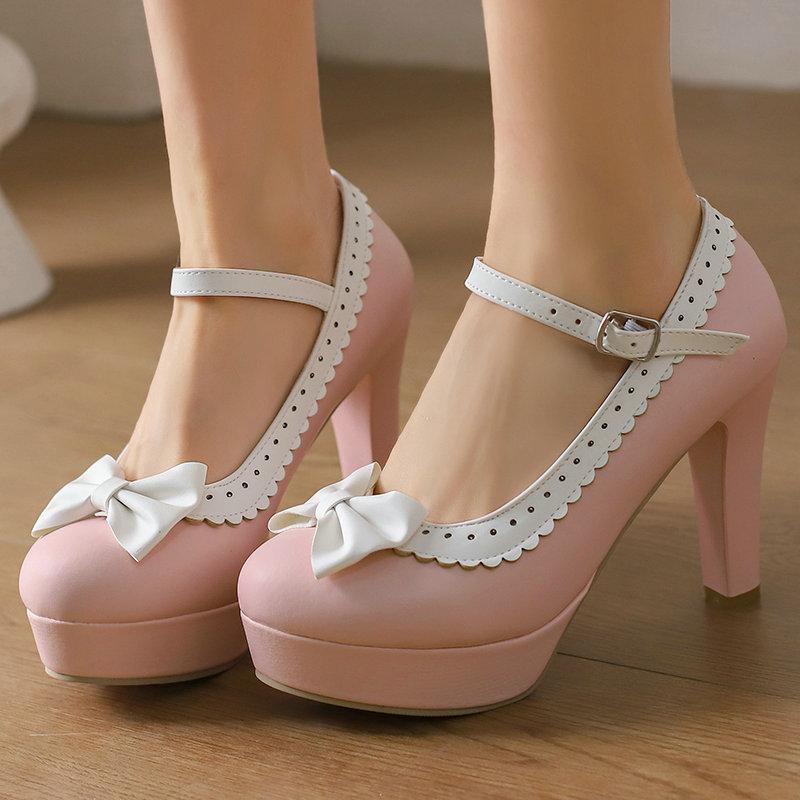Туфли на толстом каблуке с очень высоким бантом и водонепроницаемой платформой. 35