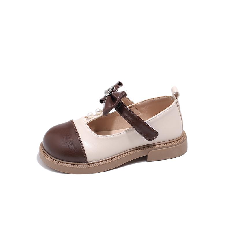 Туфли принцессы из кожи для девочек 2024 Новые детские балетки Милый бантик Детская повседневная школьная обувь с вырезами Модная универсальная 21 коричневый