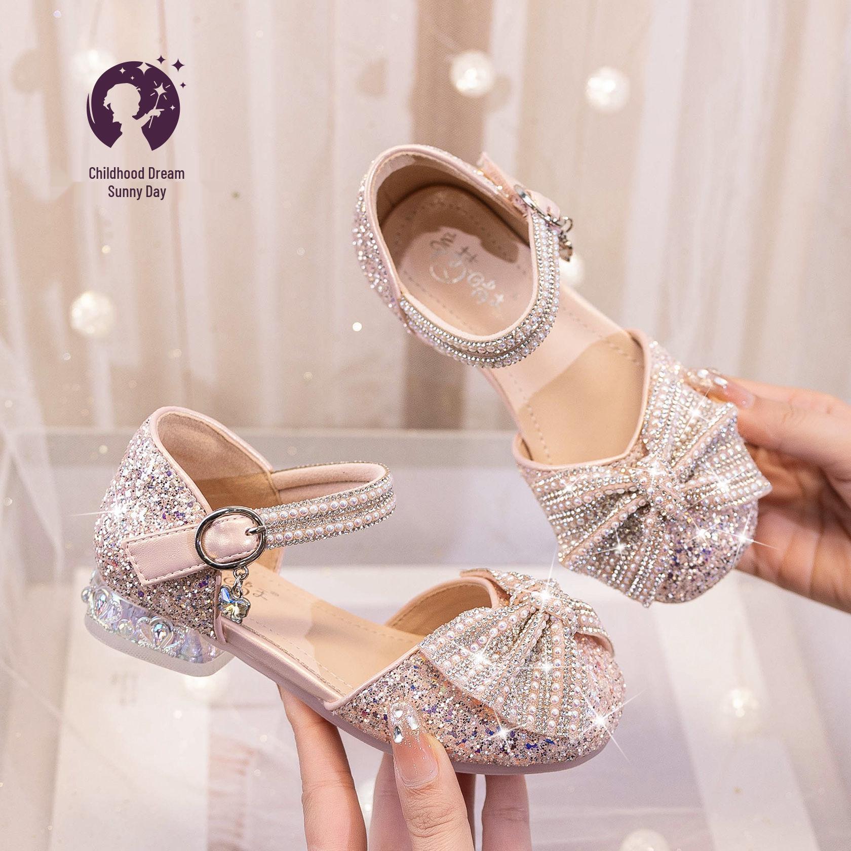 Туфли принцессы с кристаллами для девочек - Весна/Лето 2025: Блестящие кожаные туфли на высоком каблуке с мягкой подошвой для малышей Sizes 22-25, Set of 4 розовый