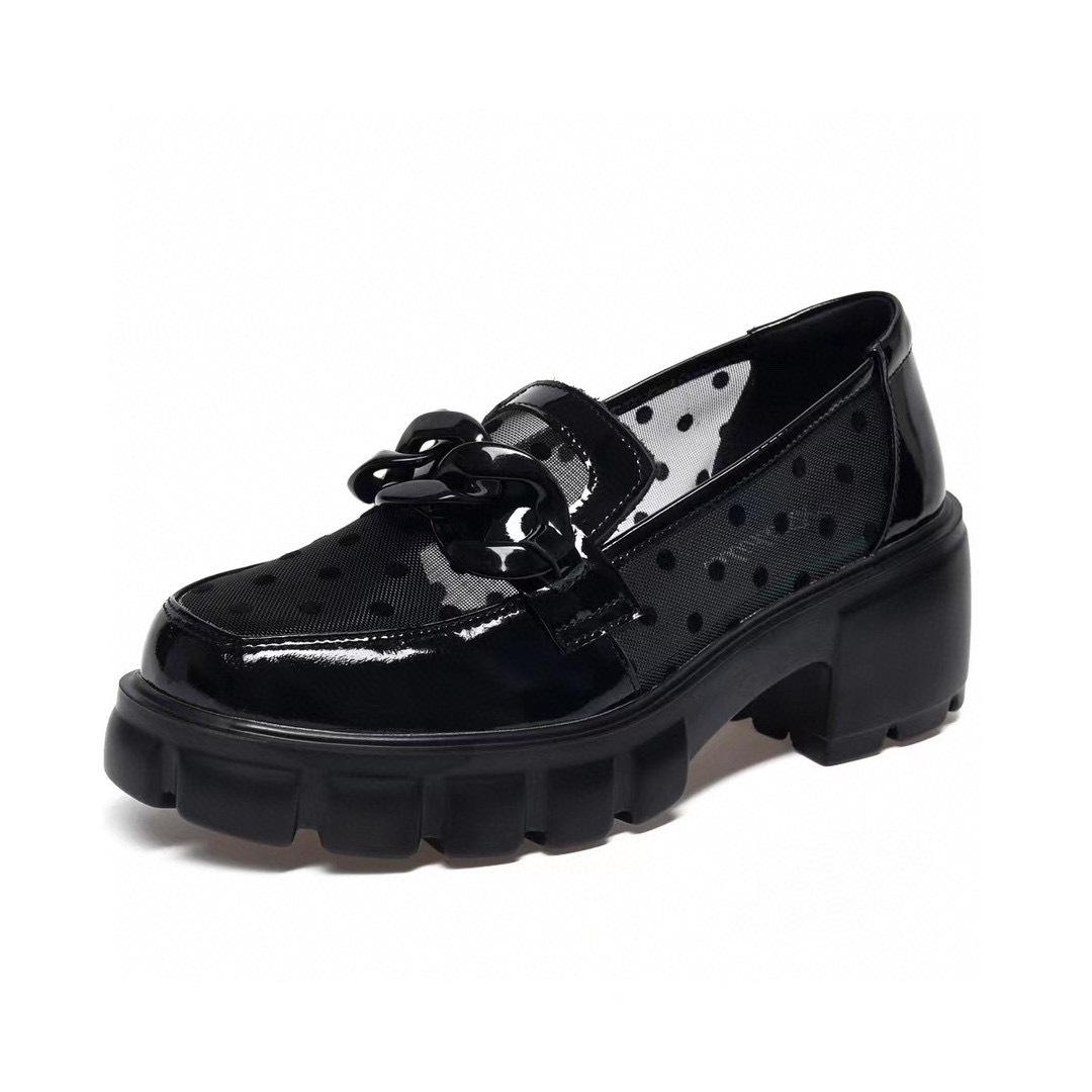 Туфли-сетка на платформе женские туфли весна и лето новые сетчатые в горошек на танкетке одинарные туфли черные коровья лакированная кожа маленькие кожаные туфли 40 чёрный