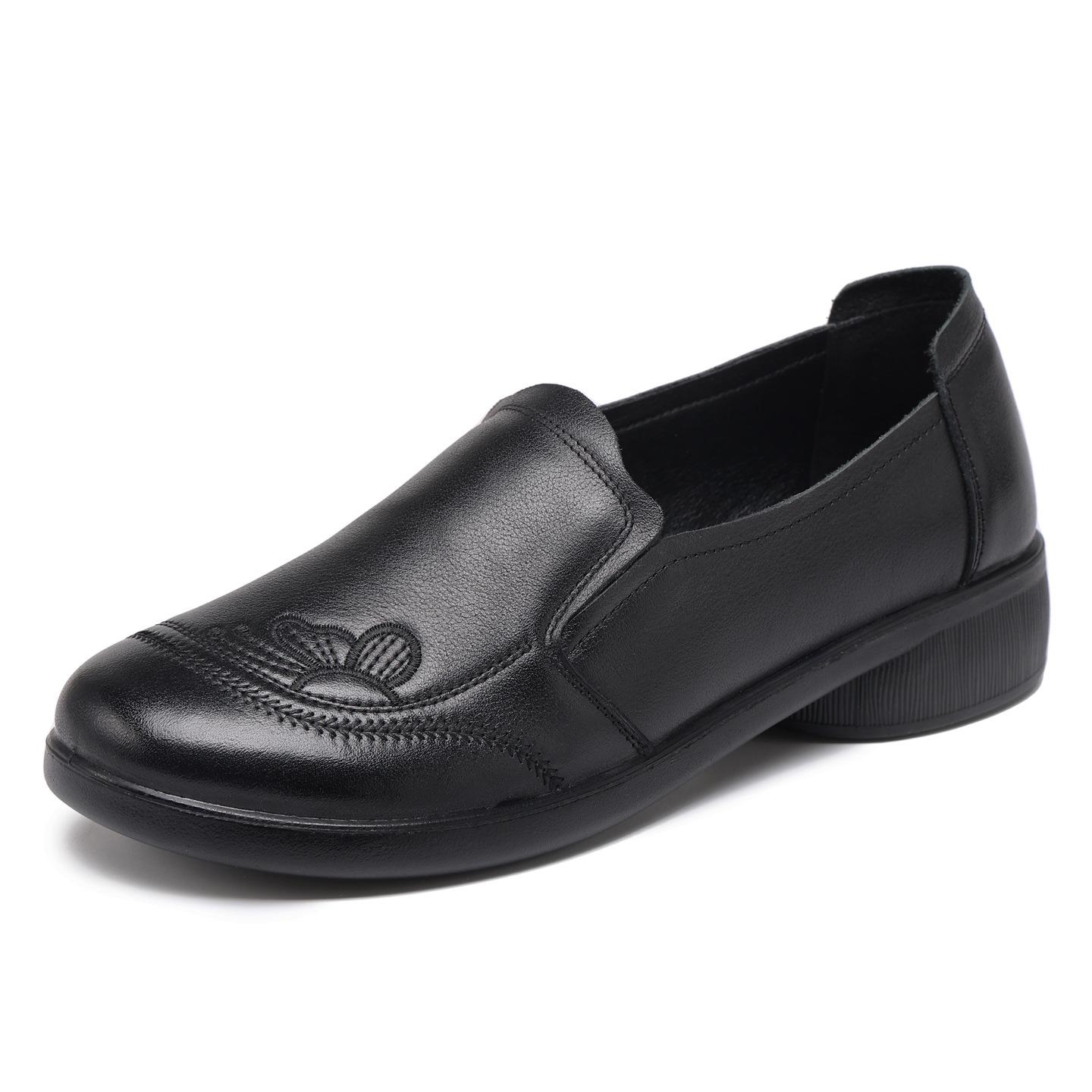 Туфли слипоны из натуральной кожи на мягкой подошве для женщин, Нескользящие, Удобные, Большого размера, Осенний стиль - Модель 801319 36 чёрный