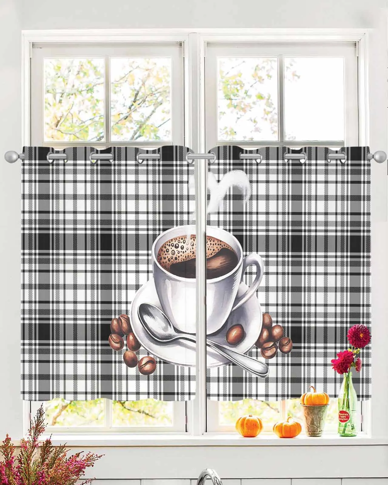 Тюлевая оконная занавеска, винтажная черно-белая клетчатая кофейная занавеска для гостиной, спальни, прозрачная шифоновая прозрачная вуаль, оконная занавеска