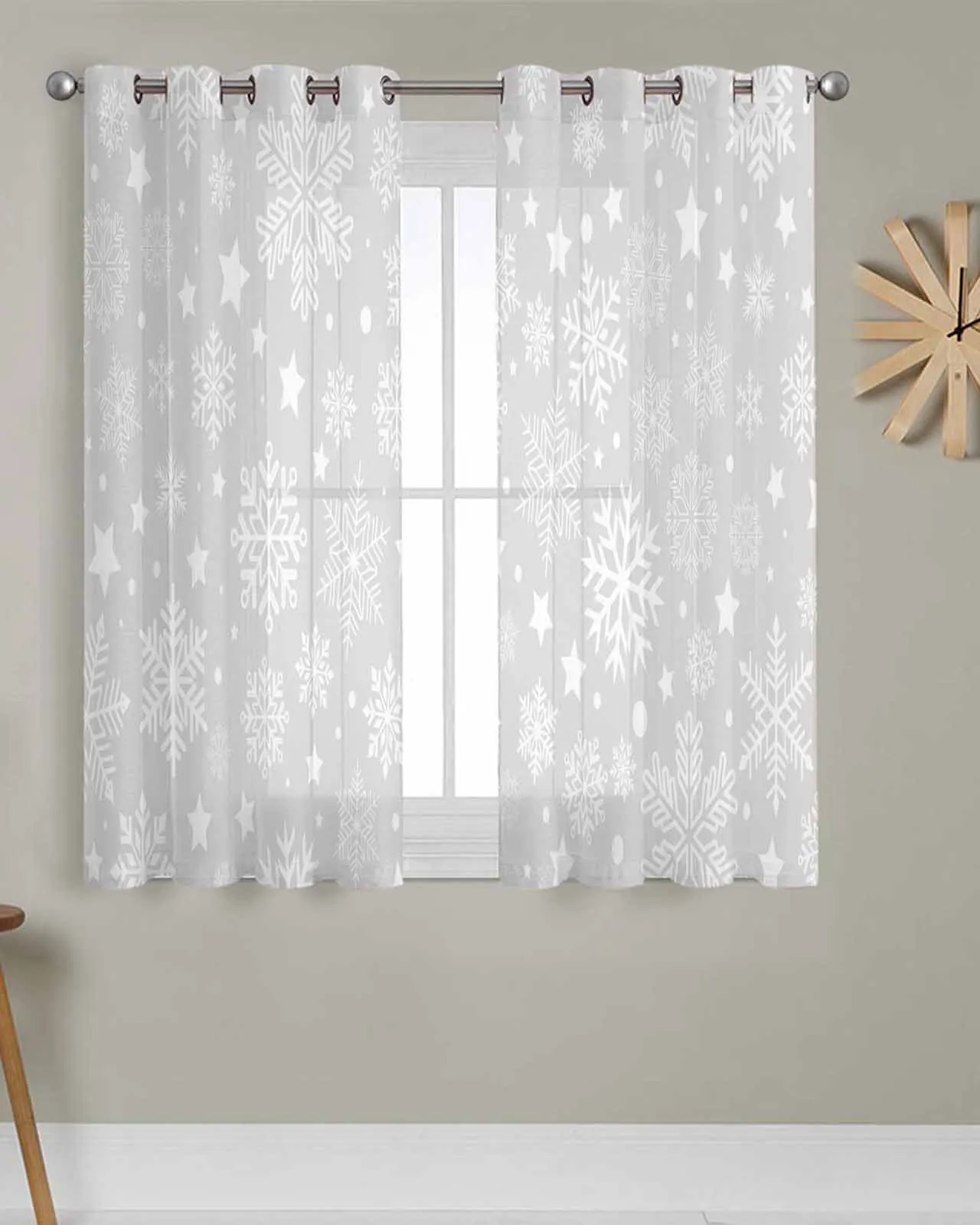 Тюлевые оконные шторы, серые снежинки, плитка с узором для гостиной, спальни, прозрачная шифоновая прозрачная вуаль, оконная занавеска