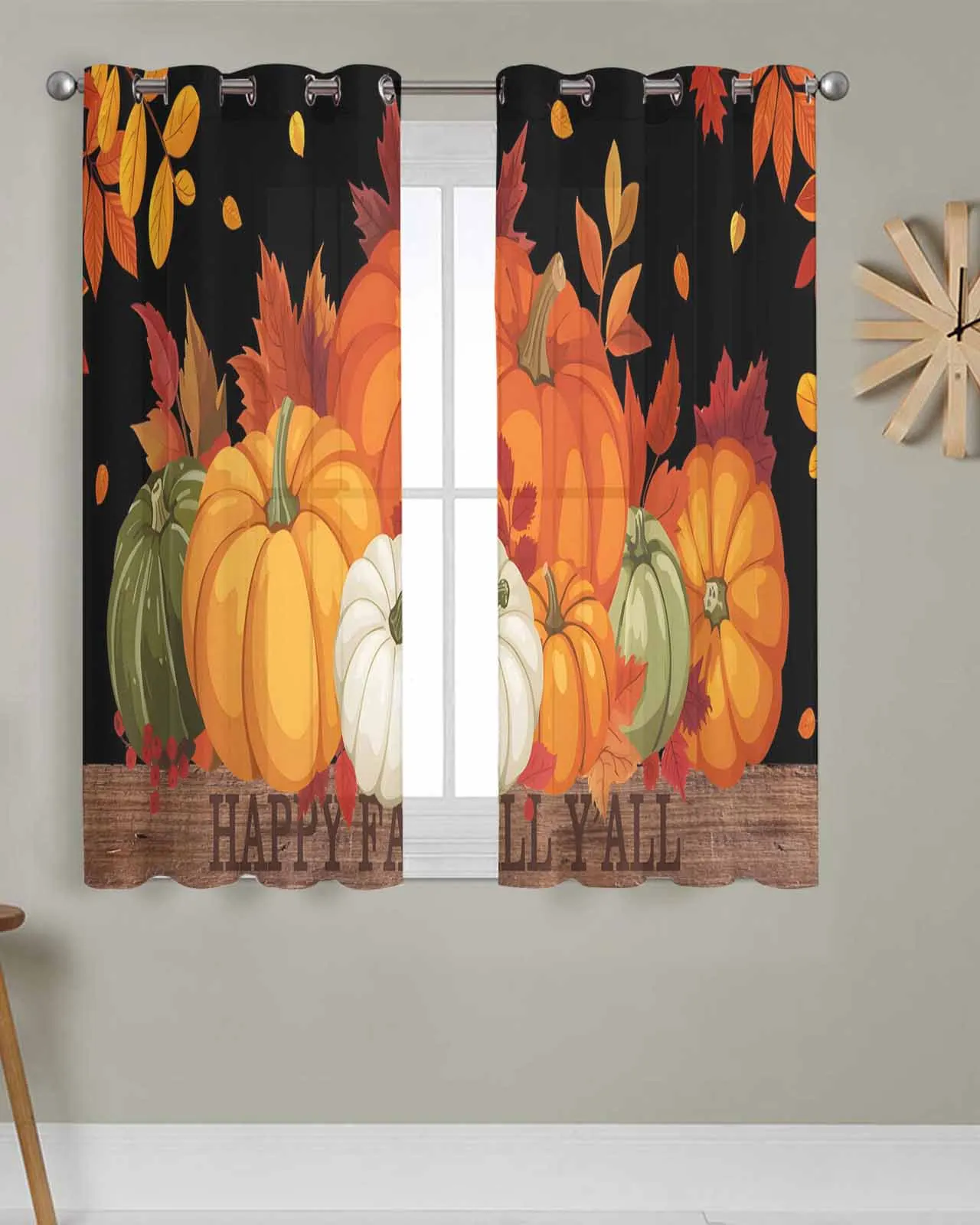 Тюлевые оконные шторы, черный фон, тыквенные листья для гостиной, спальни, прозрачная шифоновая прозрачная вуаль, оконная занавеска