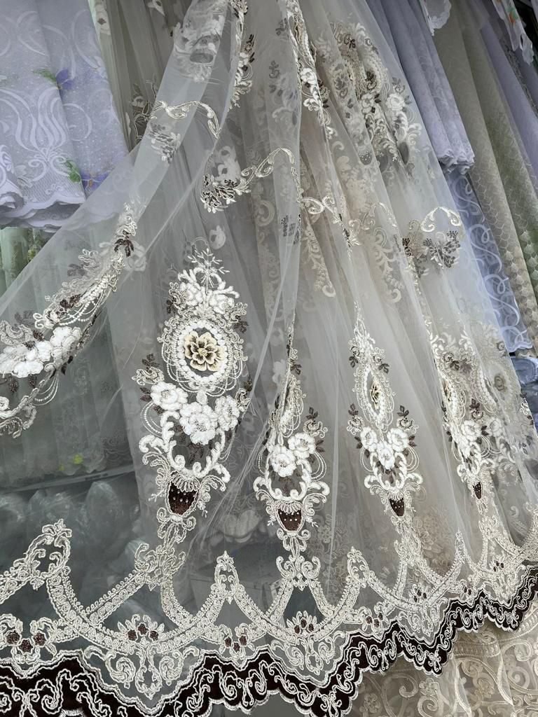 Тюль ИП Романович Е.Ю. Сетка Лепнина с цветами и бусы 6x3м (шоколад, 1 шт)