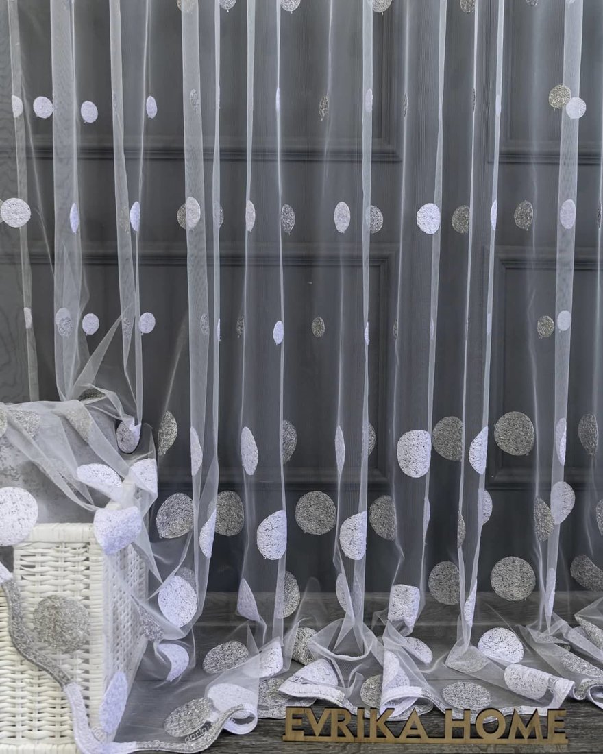 Тюль ИП Романович Е.Ю. Сетка шарики готовая на ленте 7x2.7м (серо-белый, 1 шт)
