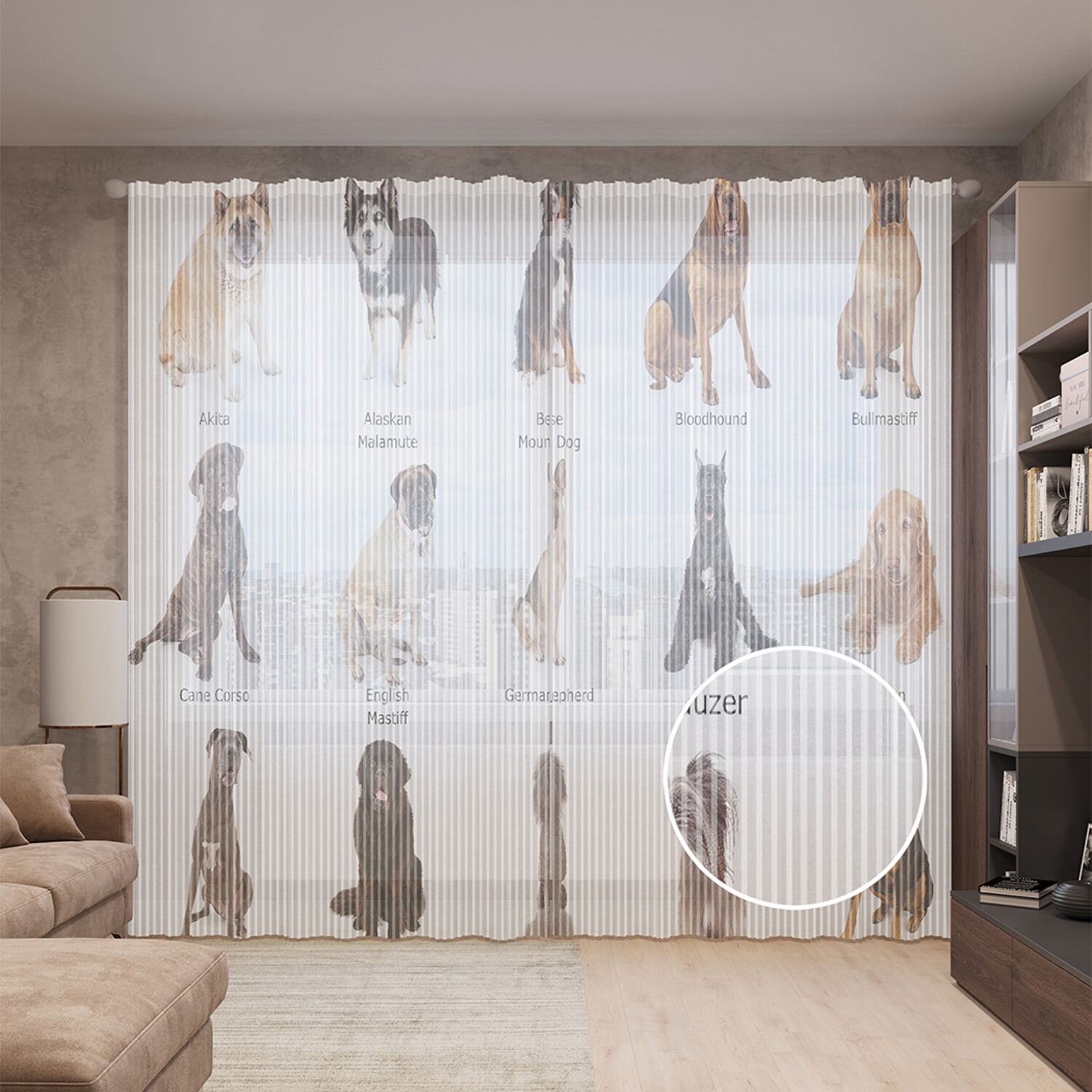 Тюль вуаль на шторной ленте с принтом JoyArty "Виды больших собак", 310х265 см, Виды больших собак