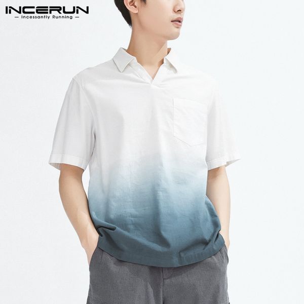 men's casual shirts incerun fashion cotton men shirt gradient short sleeve tie dye lapel pullovers streetwear chic camisas hombre 2021, White;black