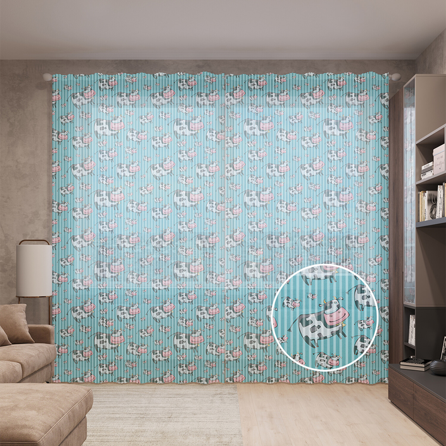 Тюль вуаль на шторной ленте с принтом JoyArty "Довольная корова", 310х265 см, Довольная корова