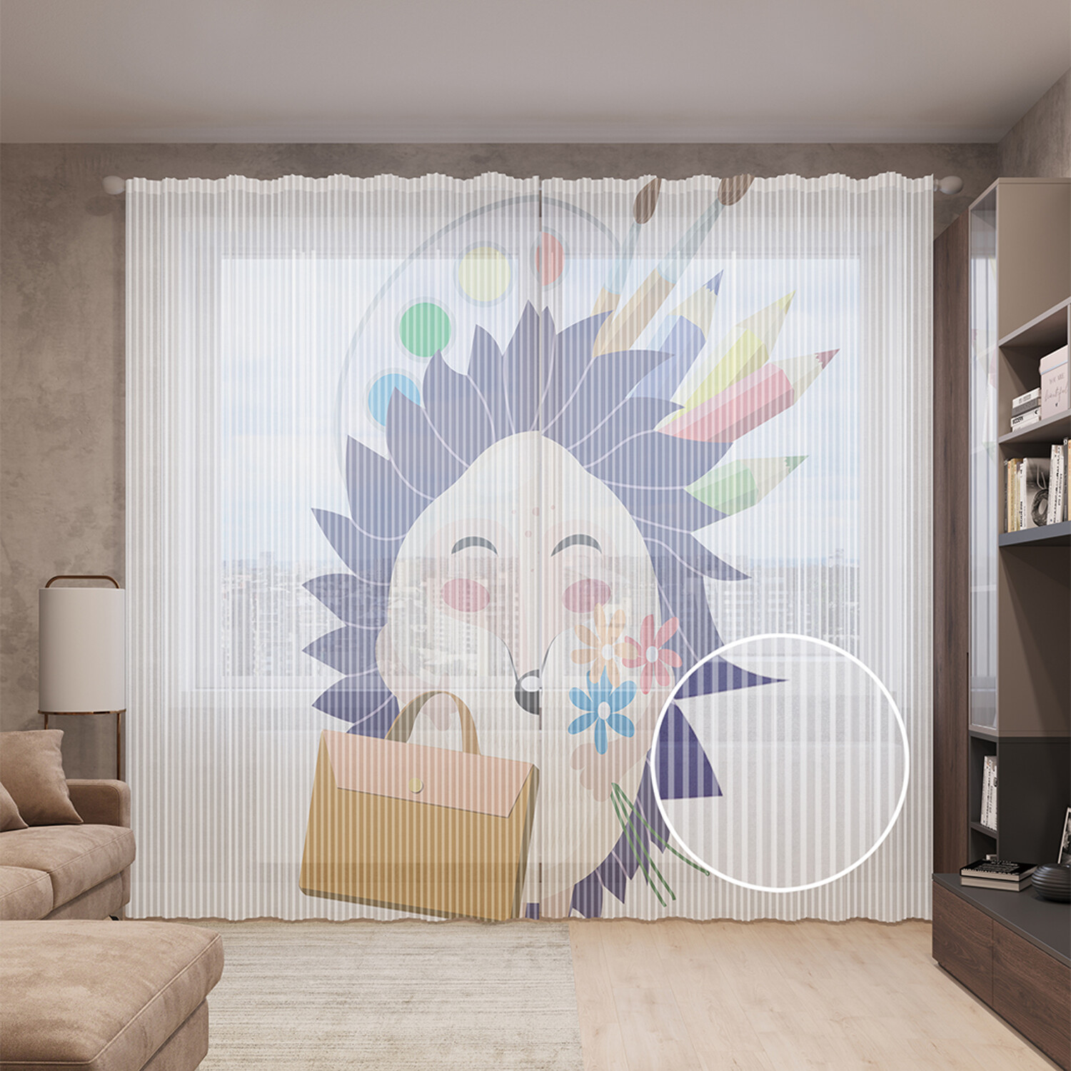 Тюль вуаль на шторной ленте с принтом JoyArty "Ежик с палитрой", 310х265 см, Ежик с палитрой
