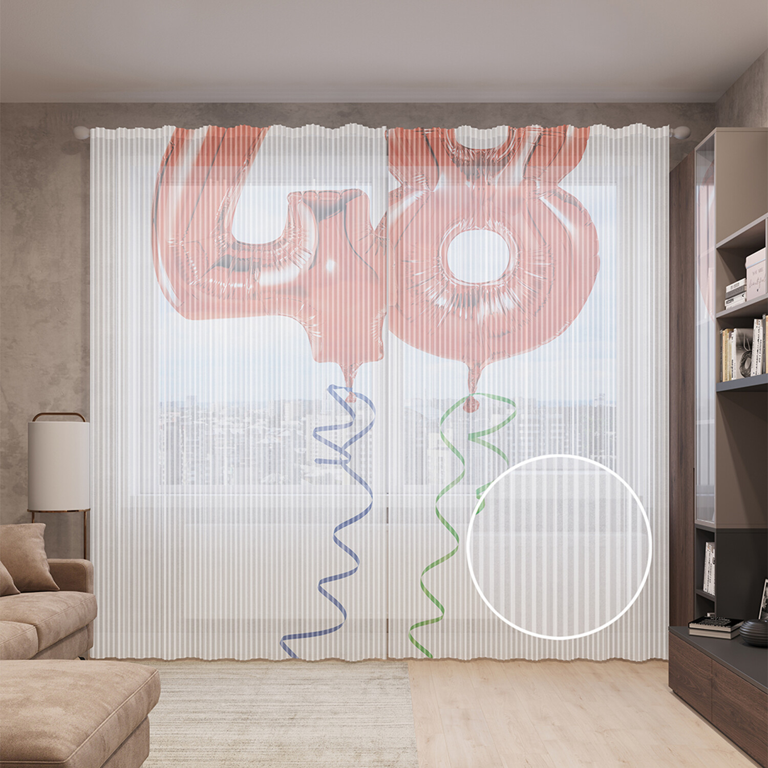 Тюль вуаль на шторной ленте с принтом JoyArty "Красные гелевые цифры", 310х265 см, Красные гелевые цифры