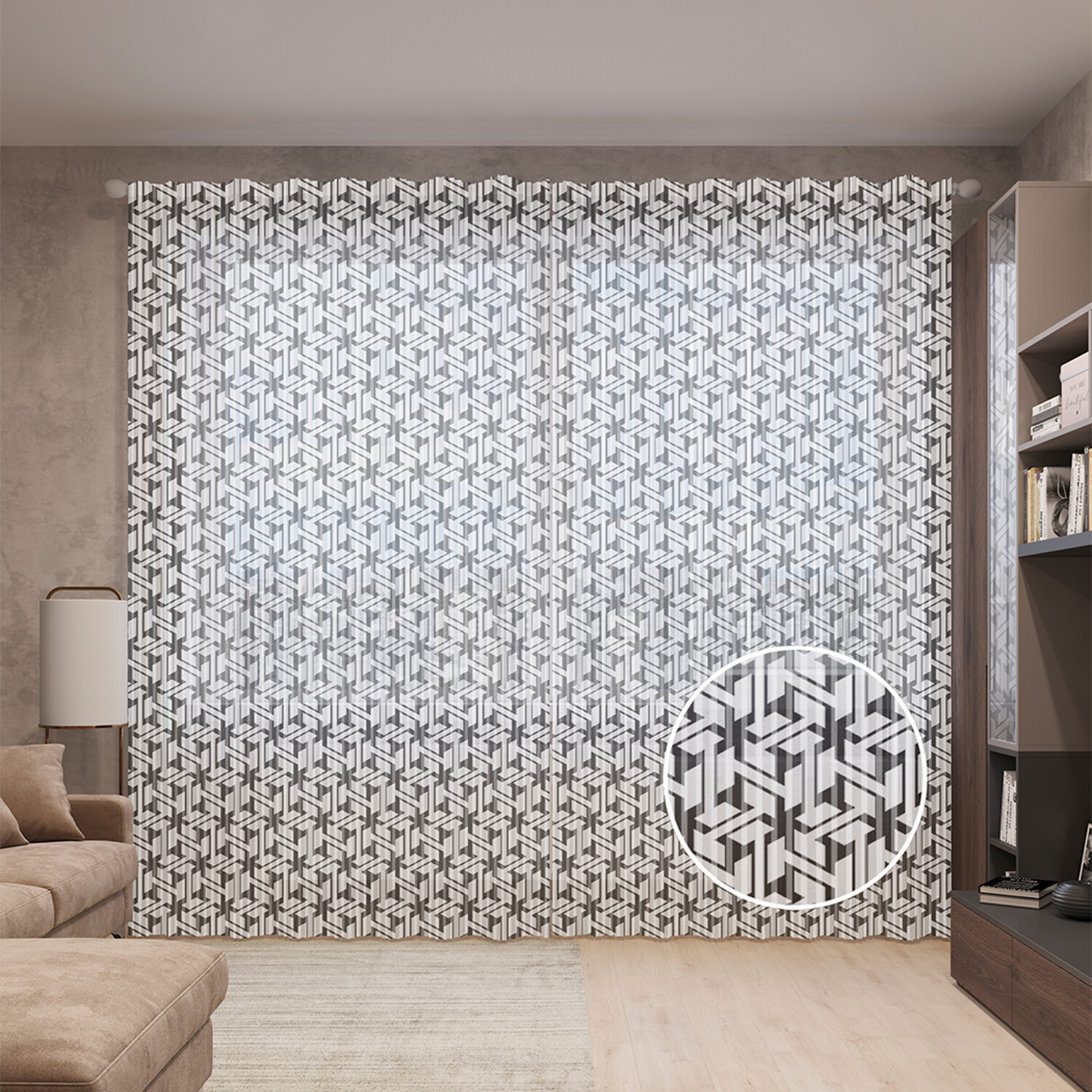 Тюль вуаль на шторной ленте с принтом JoyArty "Кубическое переплетение", 310х265 см, Кубическое переплетение