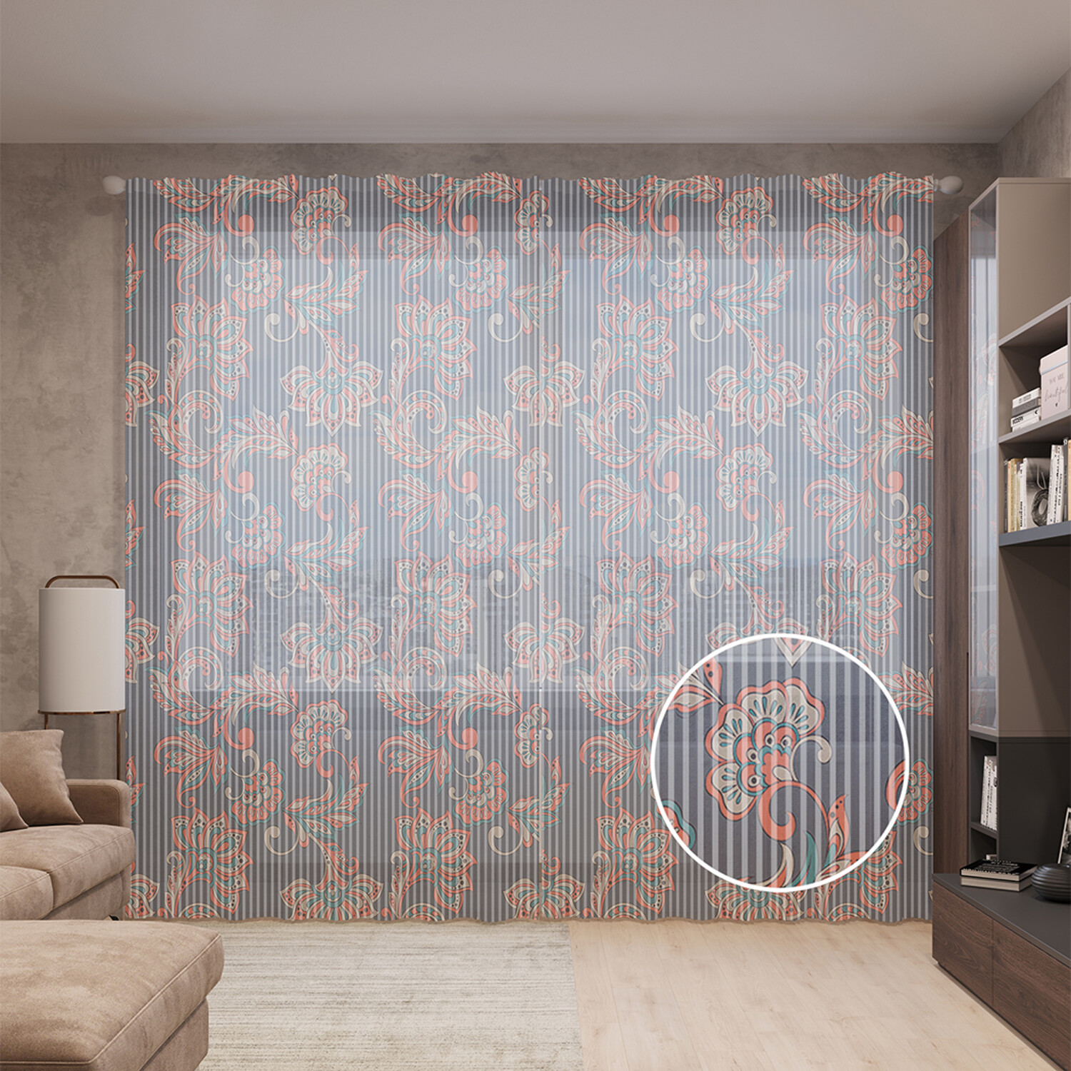 Тюль вуаль на шторной ленте с принтом JoyArty "Листья орнамента", 310х265 см, Листья орнамента