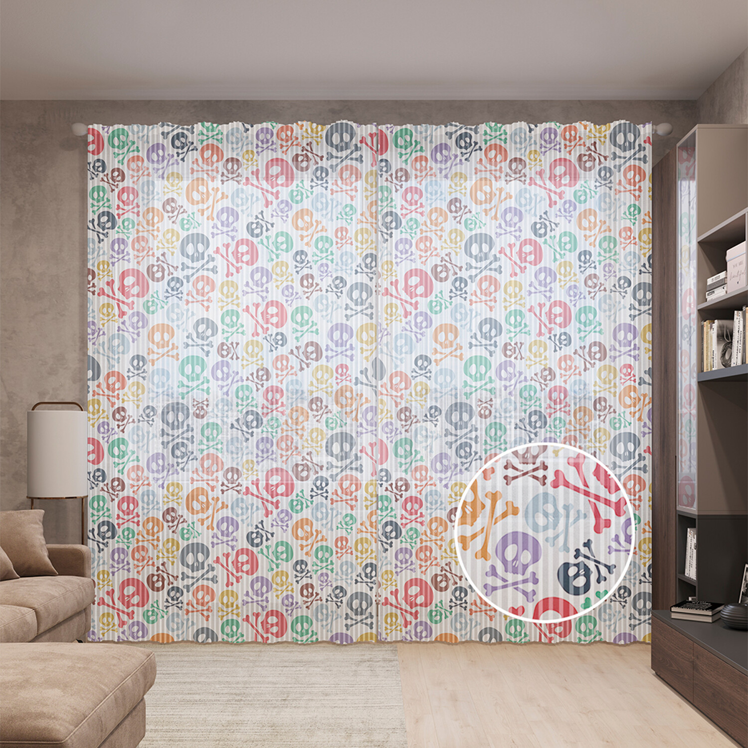Тюль вуаль на шторной ленте с принтом JoyArty "Опасные черепа", 310х265 см, Опасные черепа
