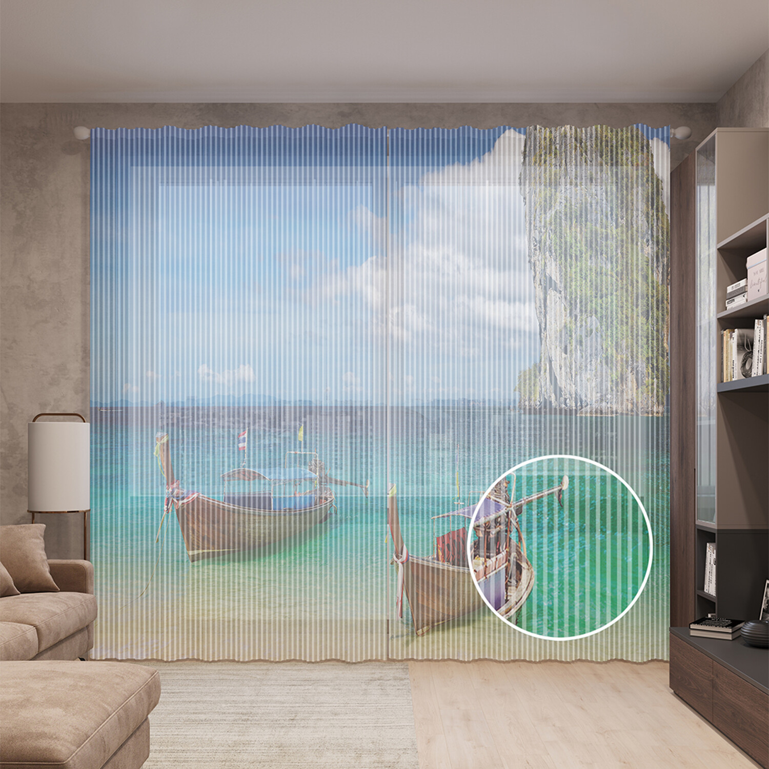 Тюль вуаль на шторной ленте с принтом JoyArty "Пара морских лодок" 310х265 см, Пара морских лодок