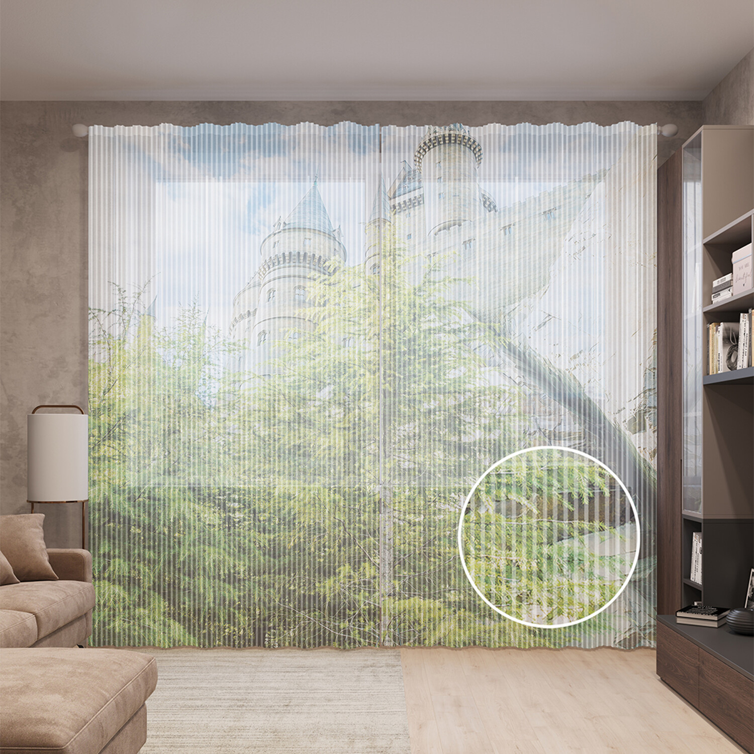 Тюль вуаль на шторной ленте с принтом JoyArty "Под стенами замка", 310х265 см, Под стенами замка