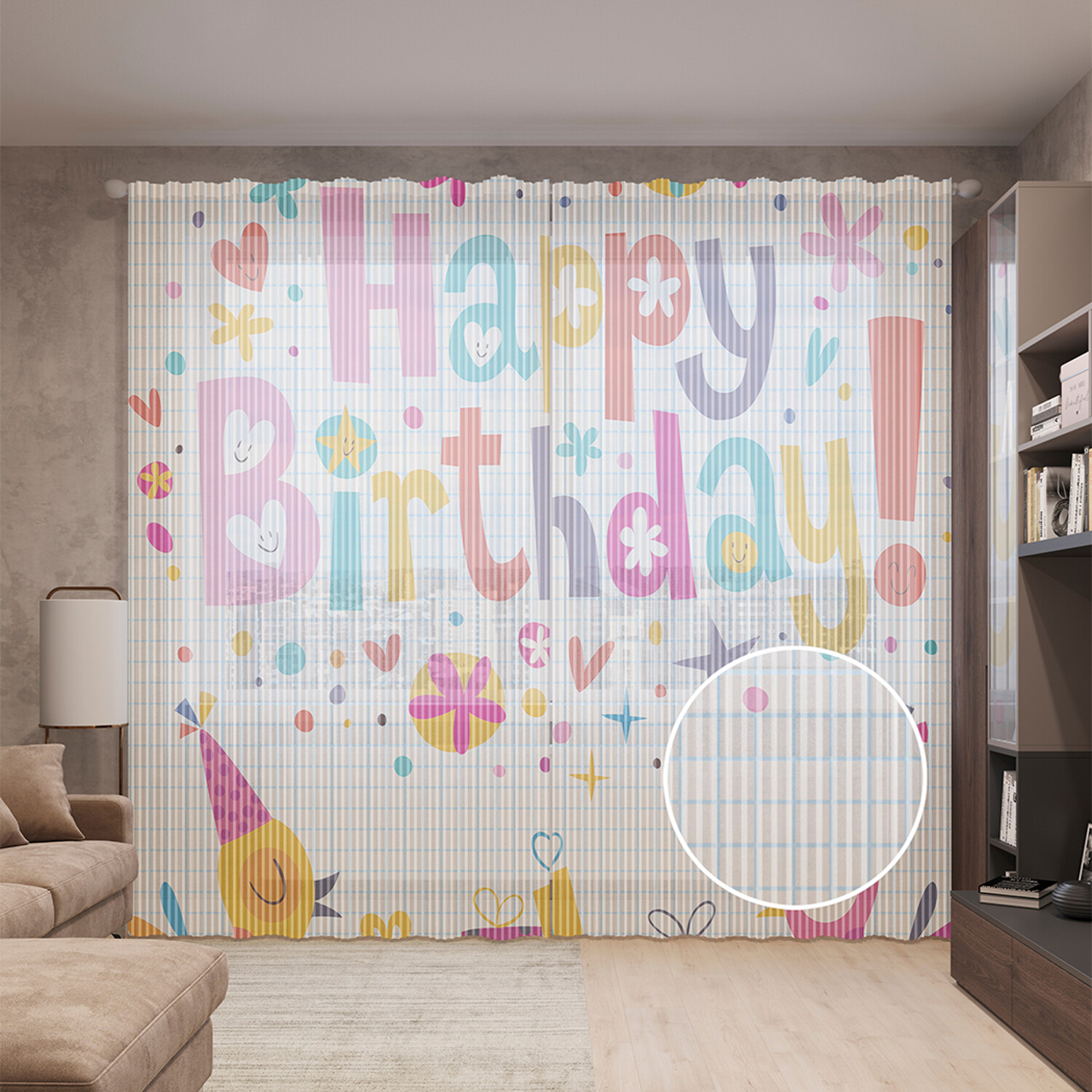 Тюль вуаль на шторной ленте с принтом JoyArty "Поздравление с днем рождения", 310х265 см, Поздравление с днем рождения
