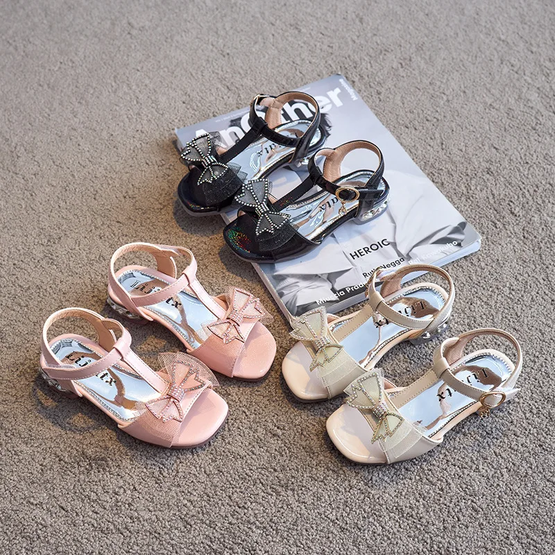 Сандалии принцессы для девочек с бантом, новинка лета 2022, модные сандалии со стразами, милые вечерние детские сандалии для свадьбы, популярн...