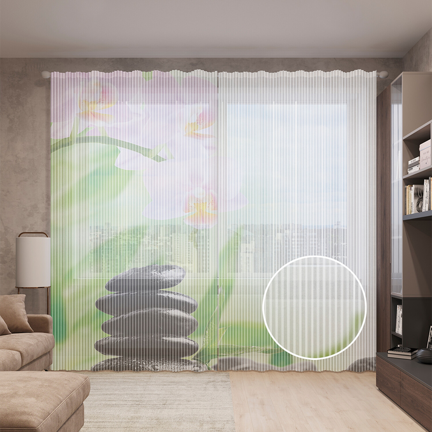 Тюль вуаль на шторной ленте с принтом JoyArty "Релакс с орхидеями", 310х265 см, Релакс с орхидеями