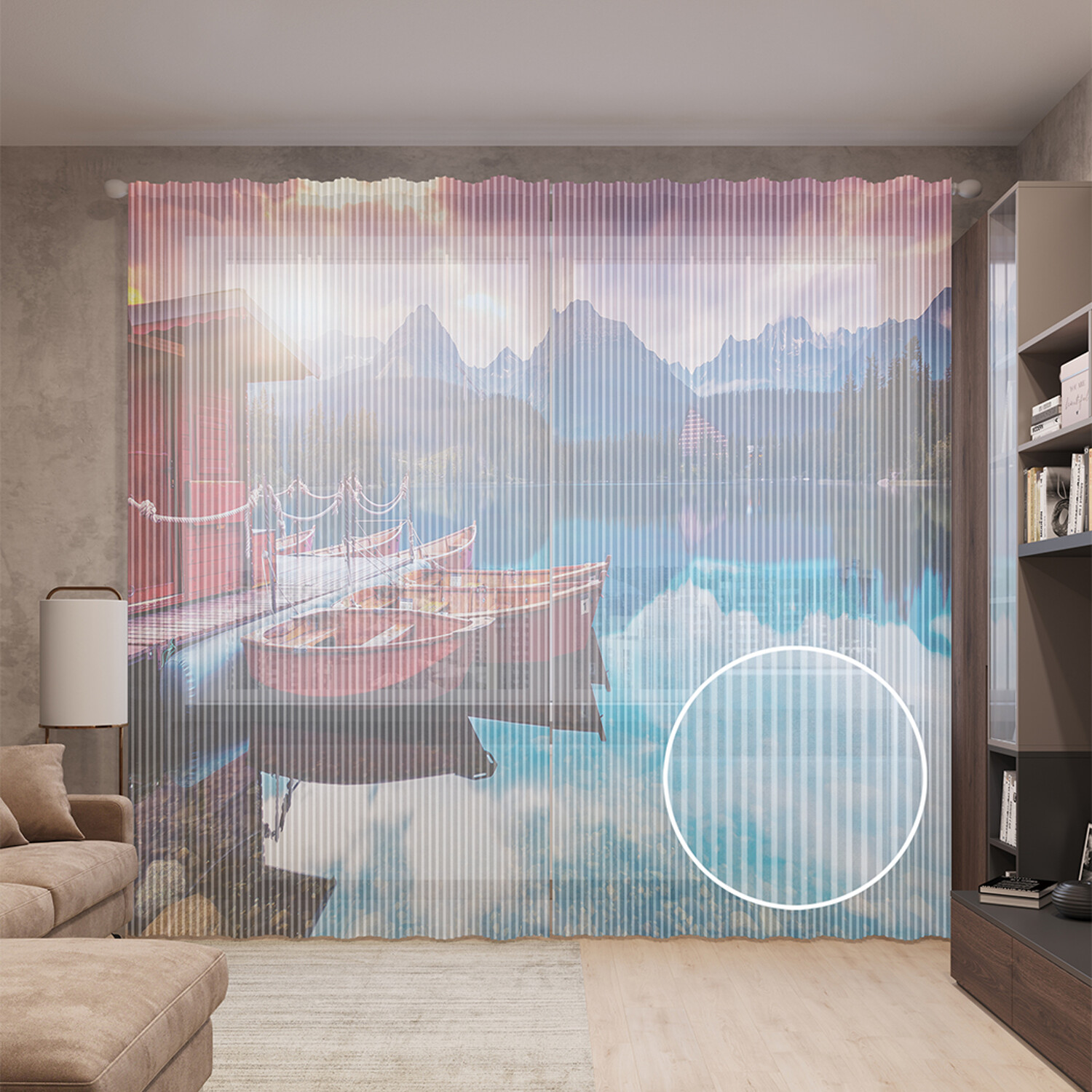 Тюль вуаль на шторной ленте с принтом JoyArty "Рыбацкая деревня" 310х265 см, Рыбацкая деревня
