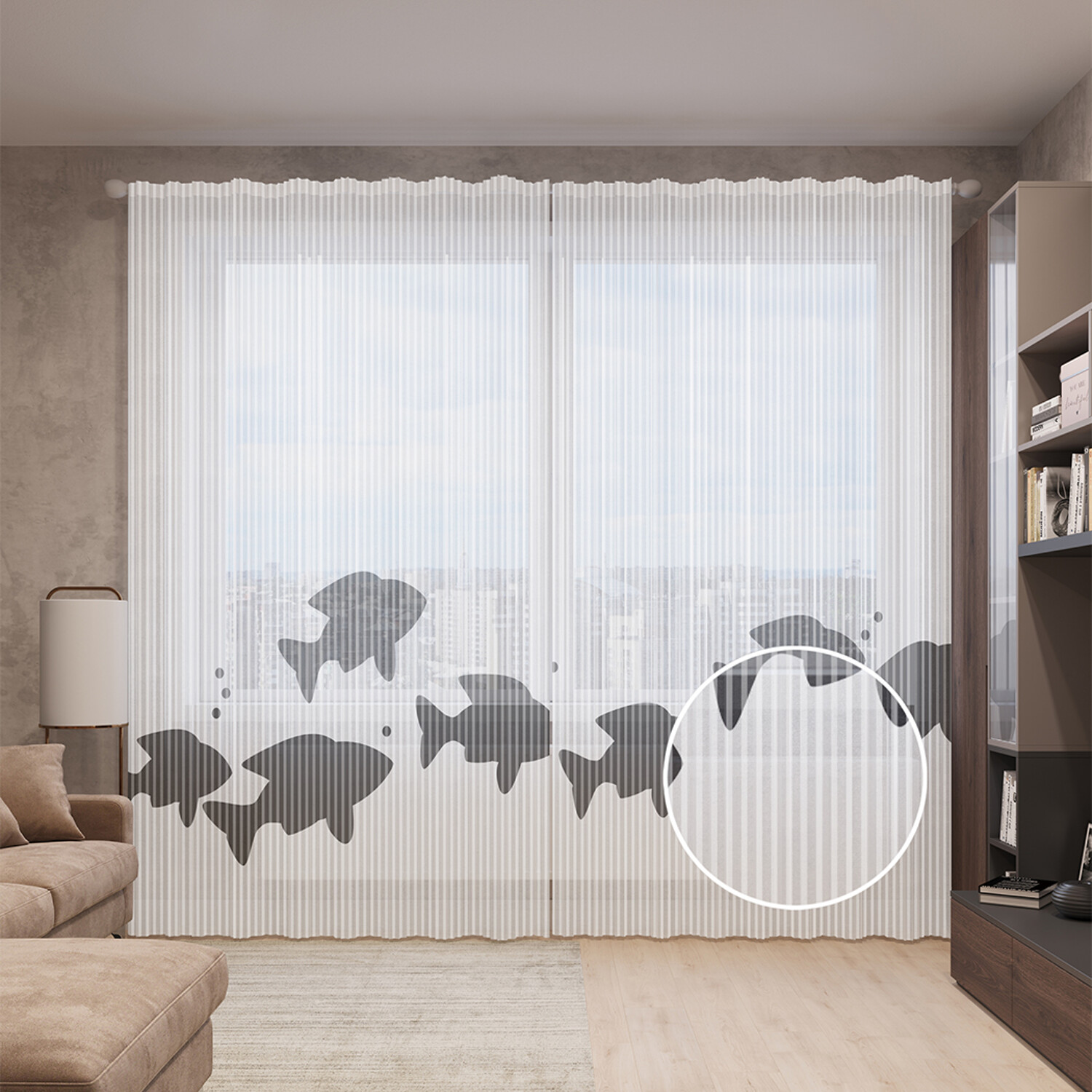 Тюль вуаль на шторной ленте с принтом JoyArty "Скрытные рыбы", 310х265 см, Скрытные рыбы