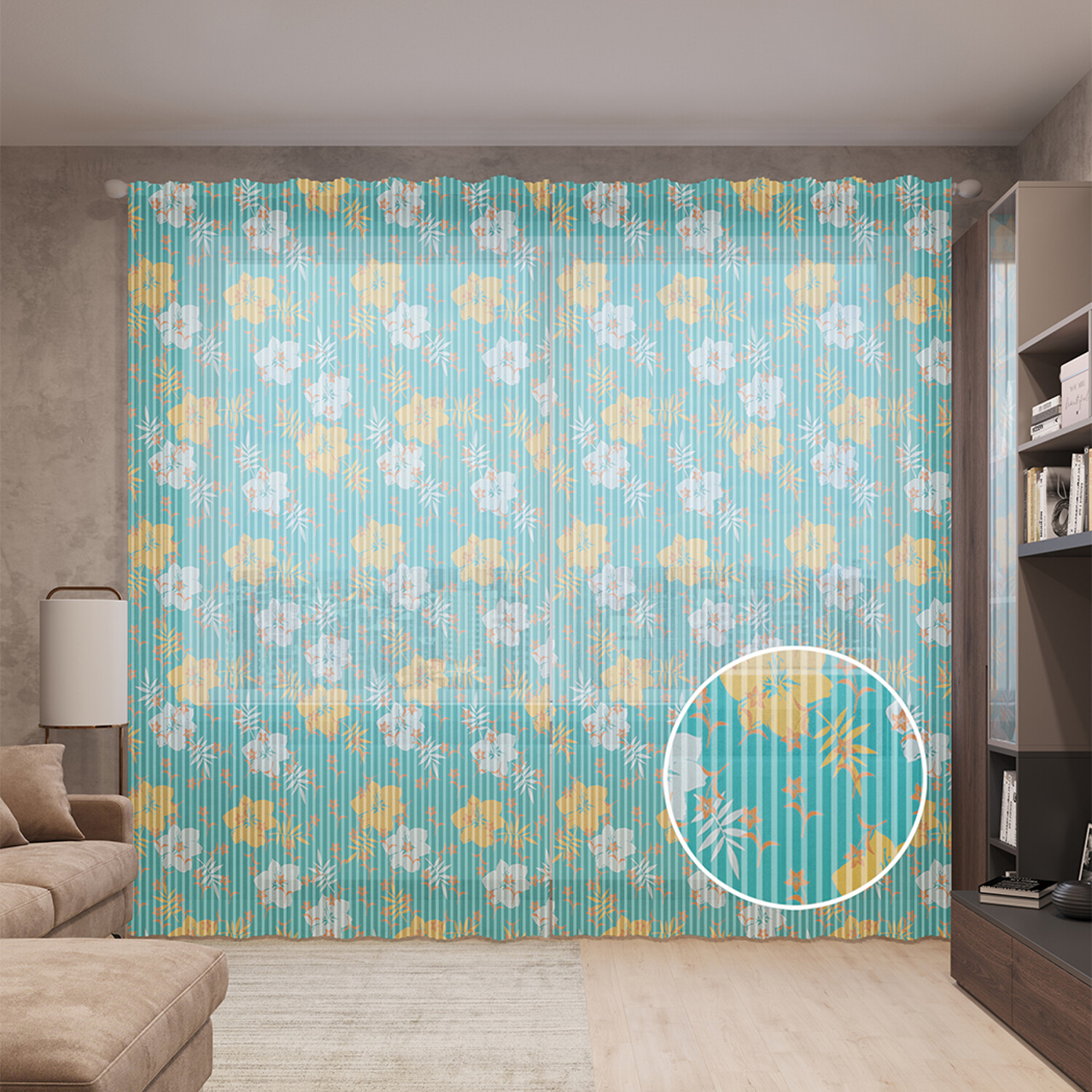 Тюль вуаль на шторной ленте с принтом JoyArty "Цветочные штампы", 310х265 см, Цветочные штампы