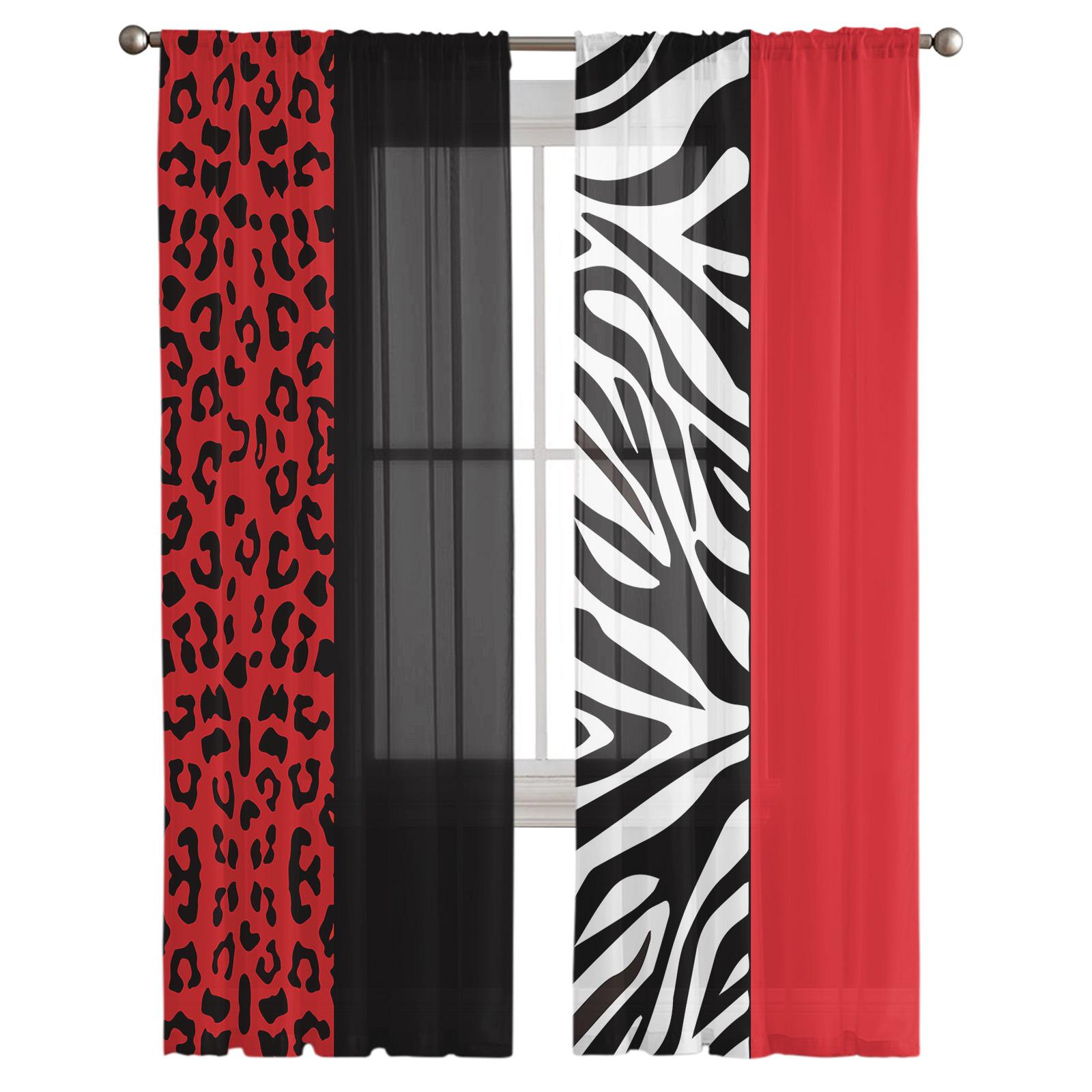 Тюль с леопардовым принтом, красный, черный, оконная занавеска для гостиной, современная прозрачная занавеска для спальни, кухни, шторы на заказ