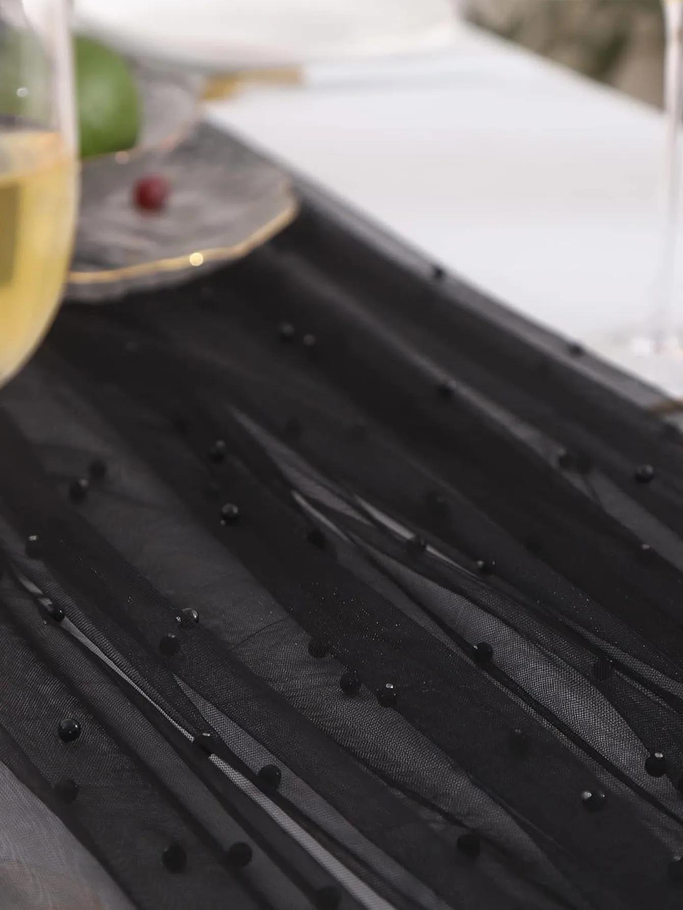 Тюль цвета белого жемчуга, прозрачный, для свадебной фаты, украшения свадебного стола, для шитья, для поделок своими руками, для платьев 50cmX155cm чёрный