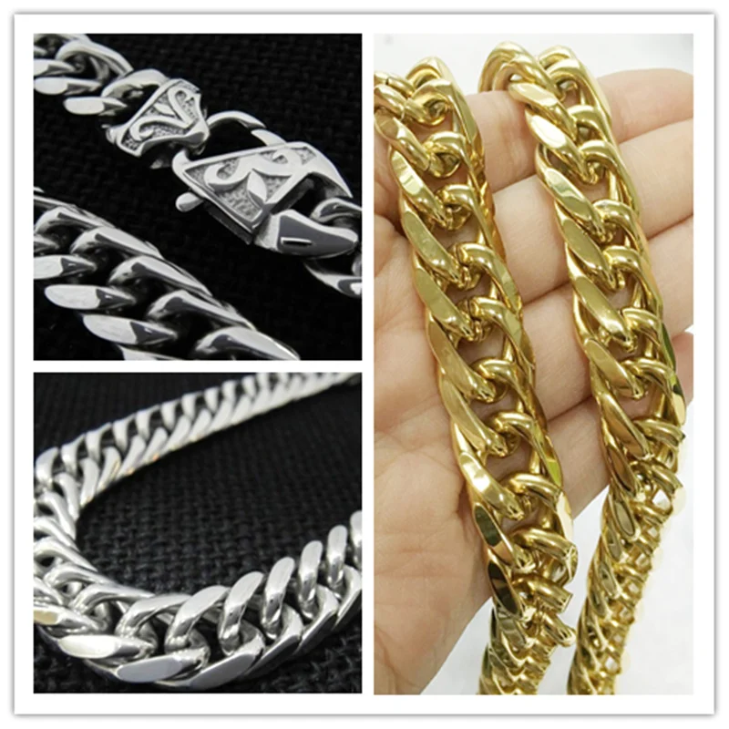 Тяжелая Очаровательная цепь 14 мм из нержавеющей стали 316L серебряного или золотого цвета, Мужская цепь из кубинской панцирной цепи для мальч...