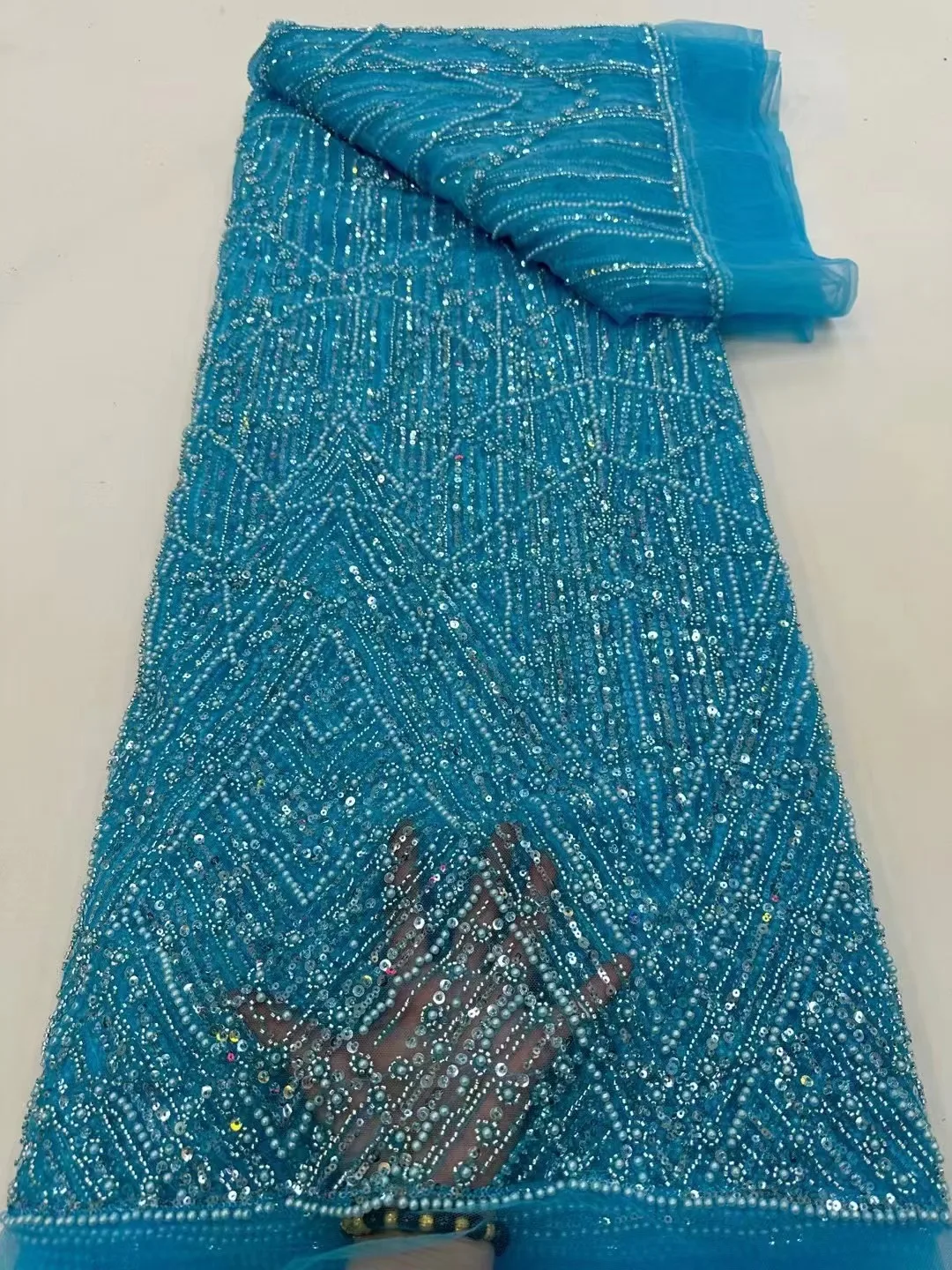 Тяжелая Свадебная кружевная ткань 2023, Африканское шитье для женского платья, драгоценный камень, серебряные бусины, кружевная ткань, роскошная блестящая ткань для платья