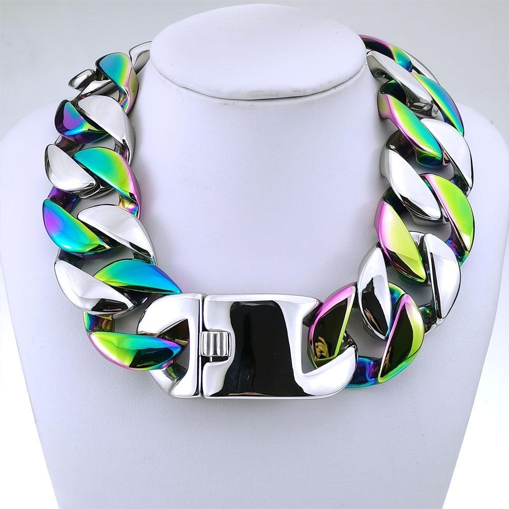 Тяжелая мужская цепочка из нержавеющей стали 316l, 32 мм, цельная, стального и радужного цветов 70cm