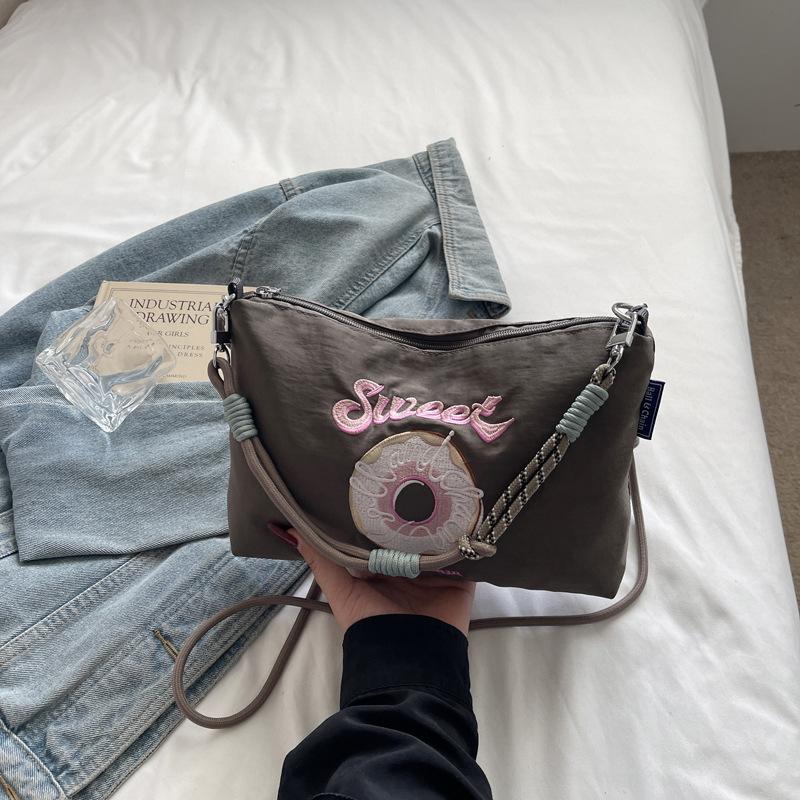 Тяжелая промышленная вышитая сумка-пончик из нейлона, женская повседневная сумка для выхода через плечо, универсальная сумка через плечо серый