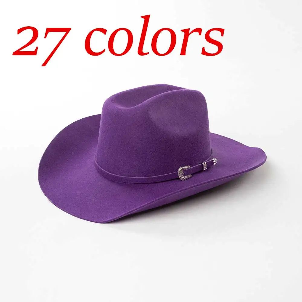 Темно-фиолетовая ковбойская шляпа из 100% шерсти, осенне-зимние аксессуары одного цвета, классическая джазовая шляпа, закрученная ковбойская шляпа, шляпа с широкими полями