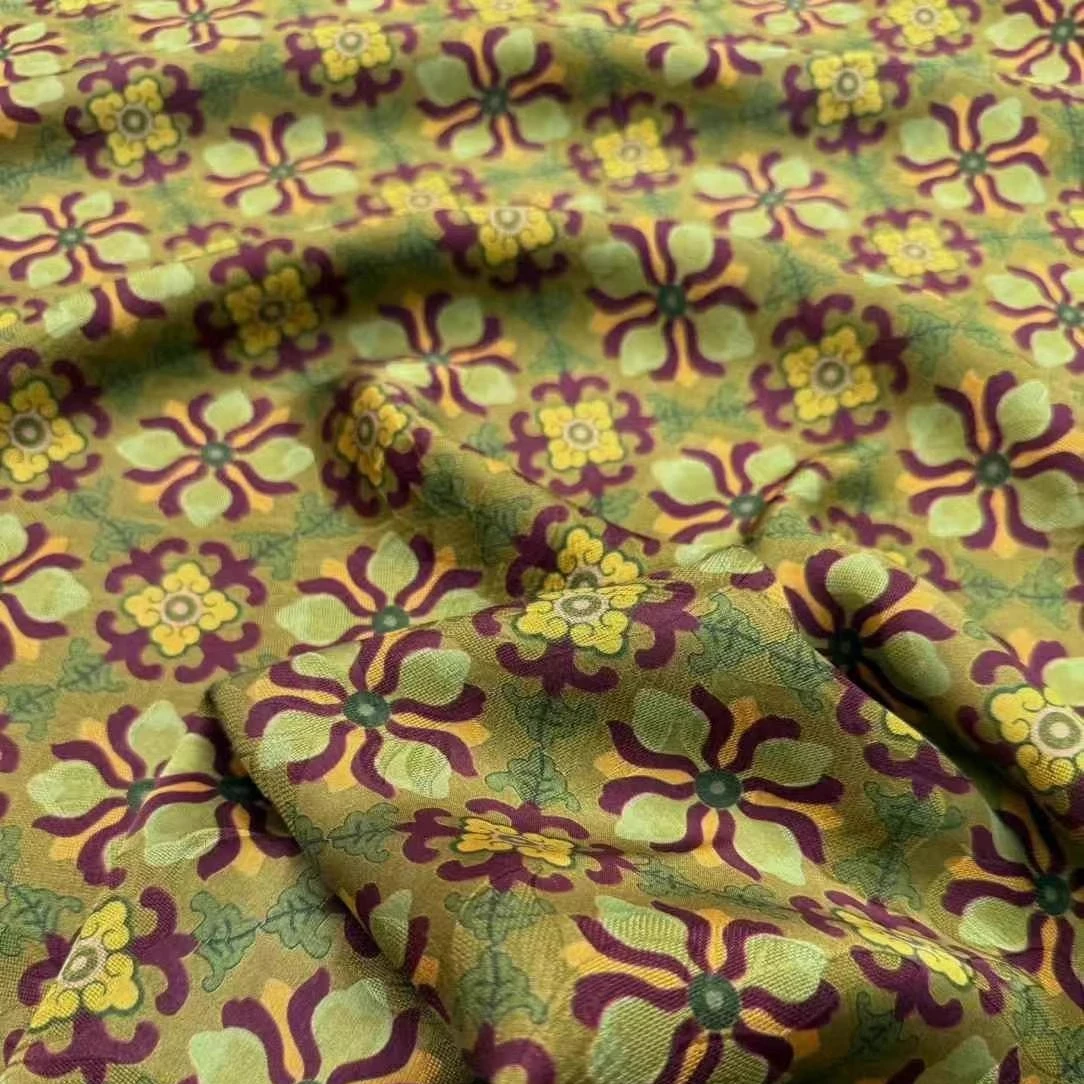 Тяжелая шелковая ткань Hualuo с традиционным принтом для летнего платья, юбки, брюк, шириной 114 см, шелковая ткань шириной 25 мм для шитья своими руками R2131