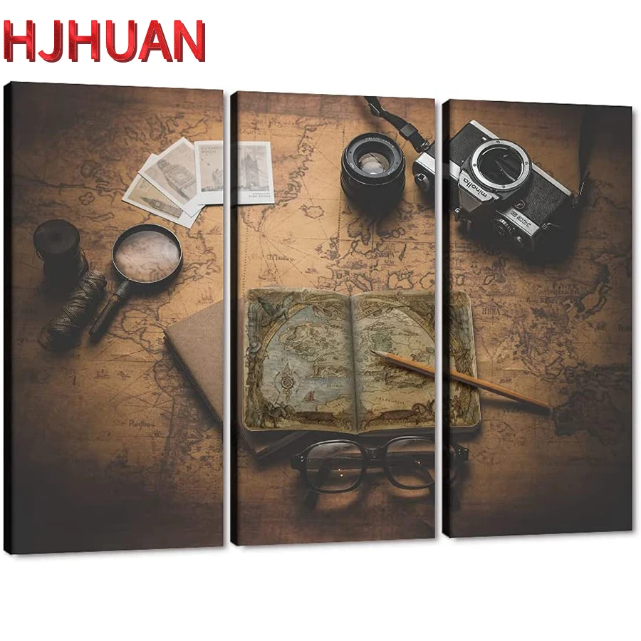Увеличительное стекло для карты в стиле ретро для украшения дома, круглая квадратная алмазная живопись, мозаичная Вышивка крестиком, карта, 3 шт.
