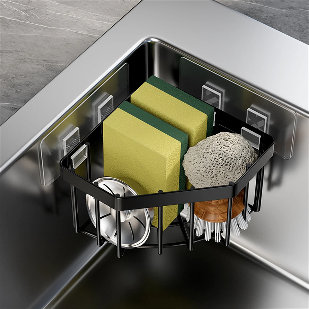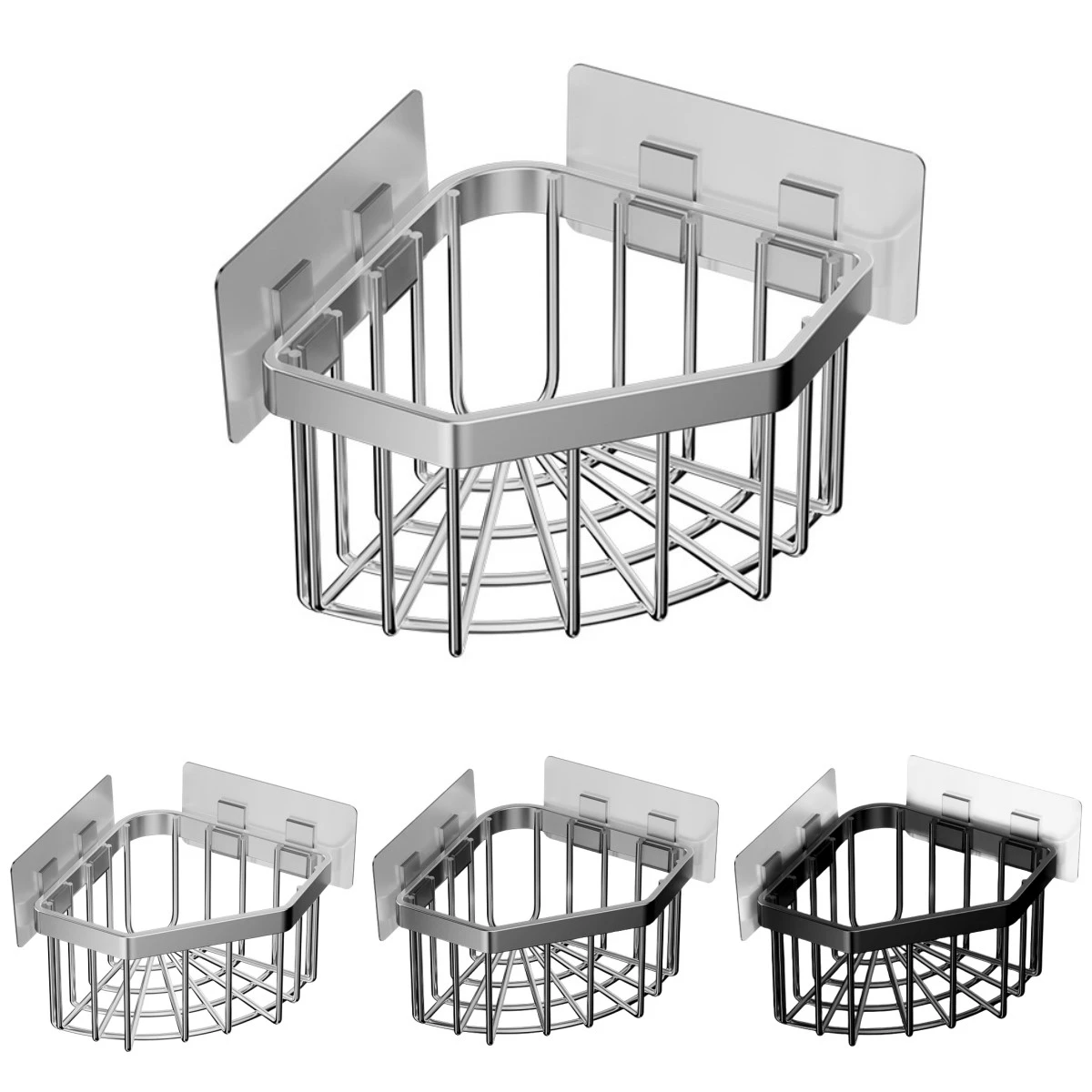 Угловая корзина для хранения раковины из нержавеющей стали, держатель для слива без отверстий в ванной комнате, полый треугольный слив