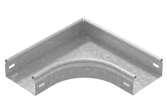 Угол гориз. 90° OSTEC УПТП90-200х100-0,7-R100-СЦ к лотку (ШхВ) 200х100 мм, сталь, оцинкованная по методу Сендзимира (032021), УПТП90-200х100-0,7-R100-СЦ